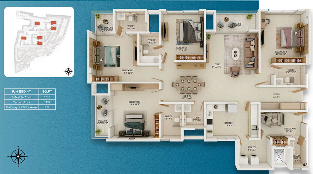 3 BHK apartment ranges between 1773 and 1818 sq ft.