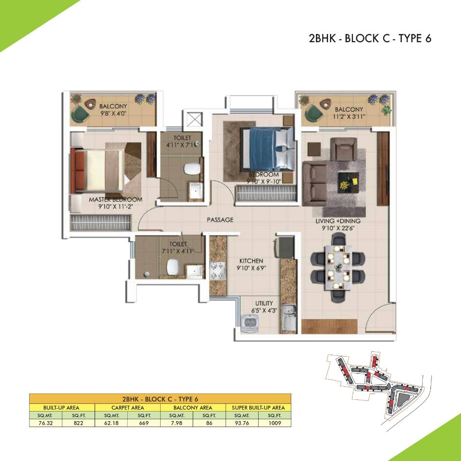 2 BHK 1009 Sqft 77 Lakhs Onwards